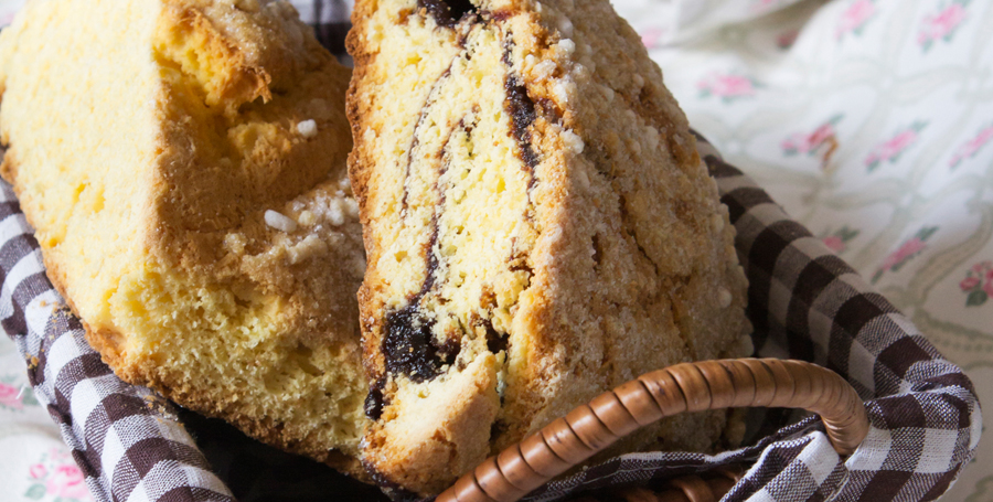 Ripiegate il bensone e girare sottosopra il dolce aiutandosi con la carta da forno in modo da lasciare in basso la giuntura tra le due estremità della pasta (in questo modo si eviterà la fuoriuscita della farcitura). Praticare una leggera incisione centrale con un coltello a lama liscia, lucidare con un uovo sbattuto o un po’ di latte.
