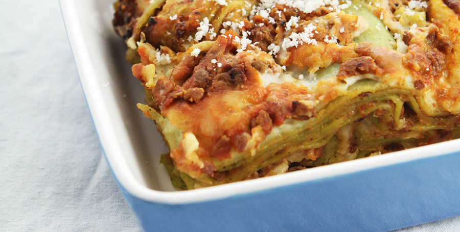 In una teglia, disporre a strati alterni sfoglia, ragù e besciamella.